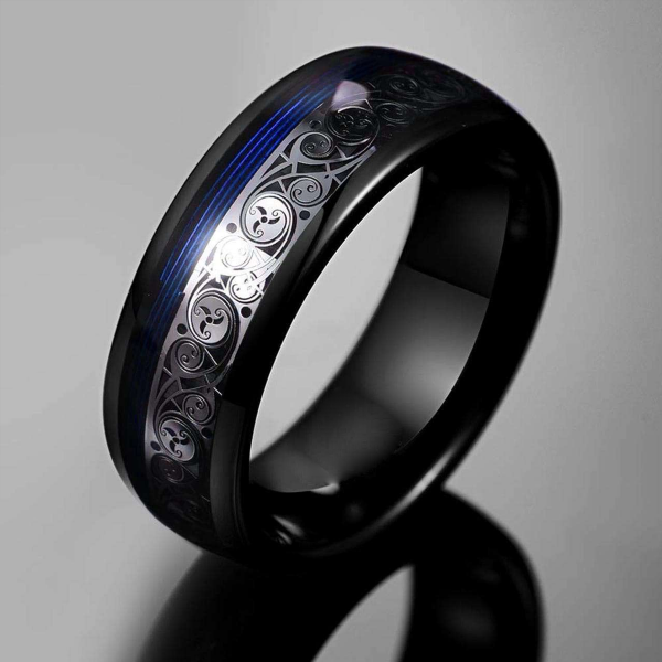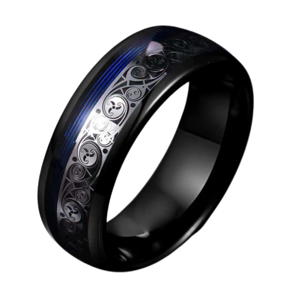 Inspired by the boundless sky and the depths of the ocean, Aether is a fusion of resilience and tranquility. Its black tungsten body exudes strength, while the striking blue inlay flows like an untamed current. A silver wave pattern cuts through, representing harmony between power and peace. Designed for those who move with quiet confidence yet leave a lasting impression, Aether is a statement of unwavering presence and effortless style.