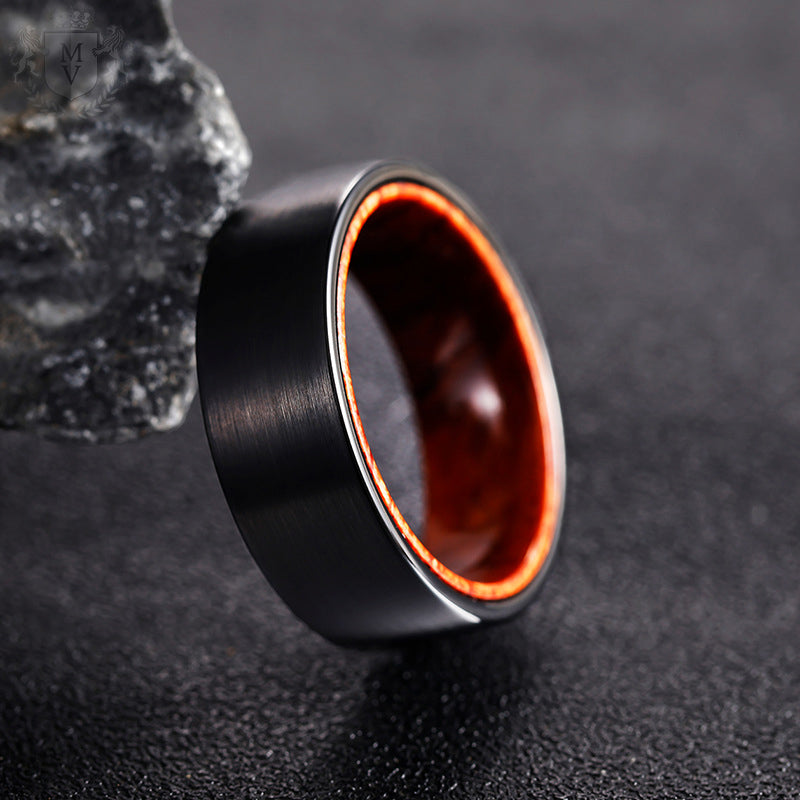 Asheron is forged for those who carry fire beneath still waters. A matte black tungsten exterior speaks in silence, while its polished red sandalwood interior reveals warmth, richness, and complexity. This ring is built for quiet strength — for the kind of person who doesn’t need to raise their voice to be heard. Timeless, durable, and unforgettable, Asheron is more than a ring — it’s a reflection of what lies beneath.
