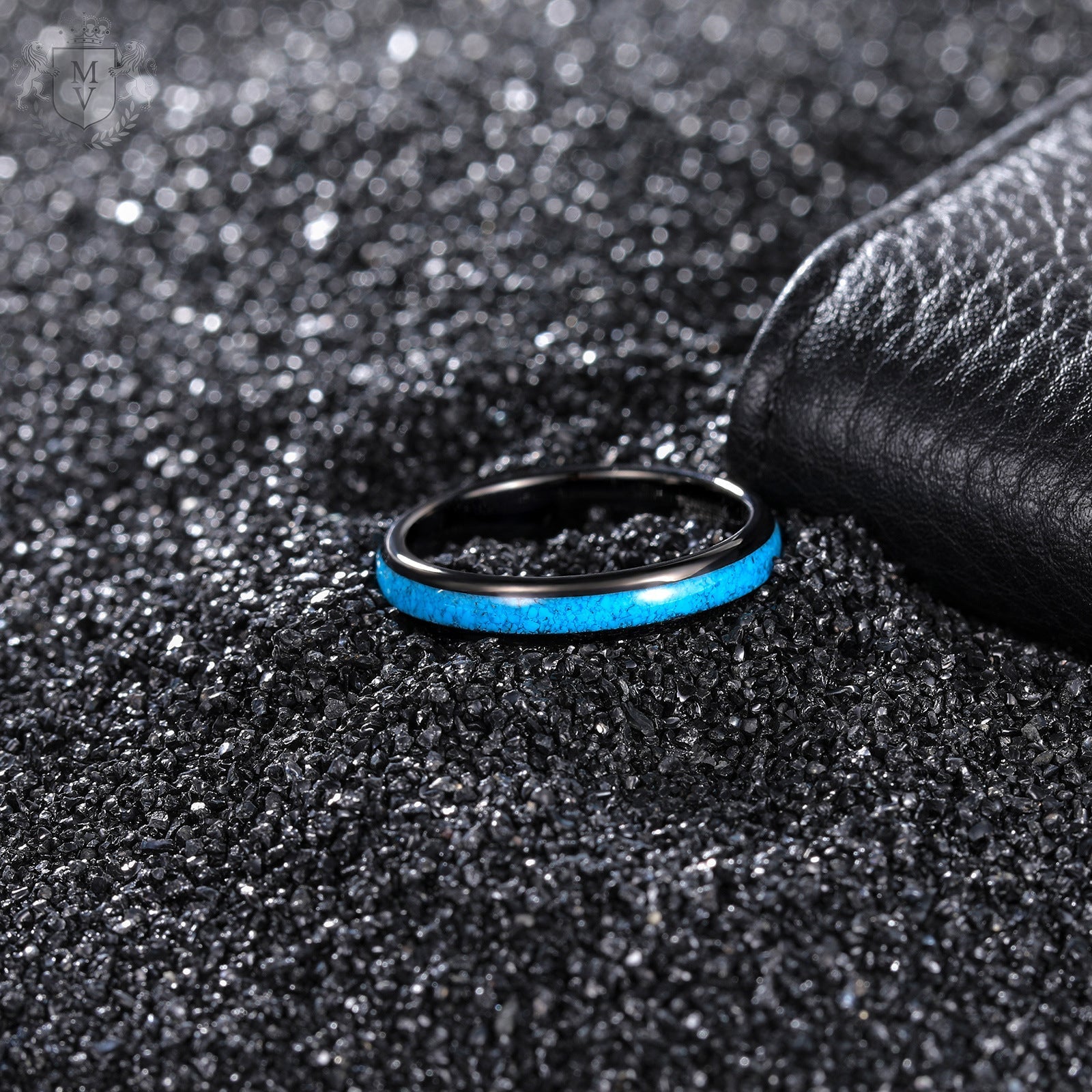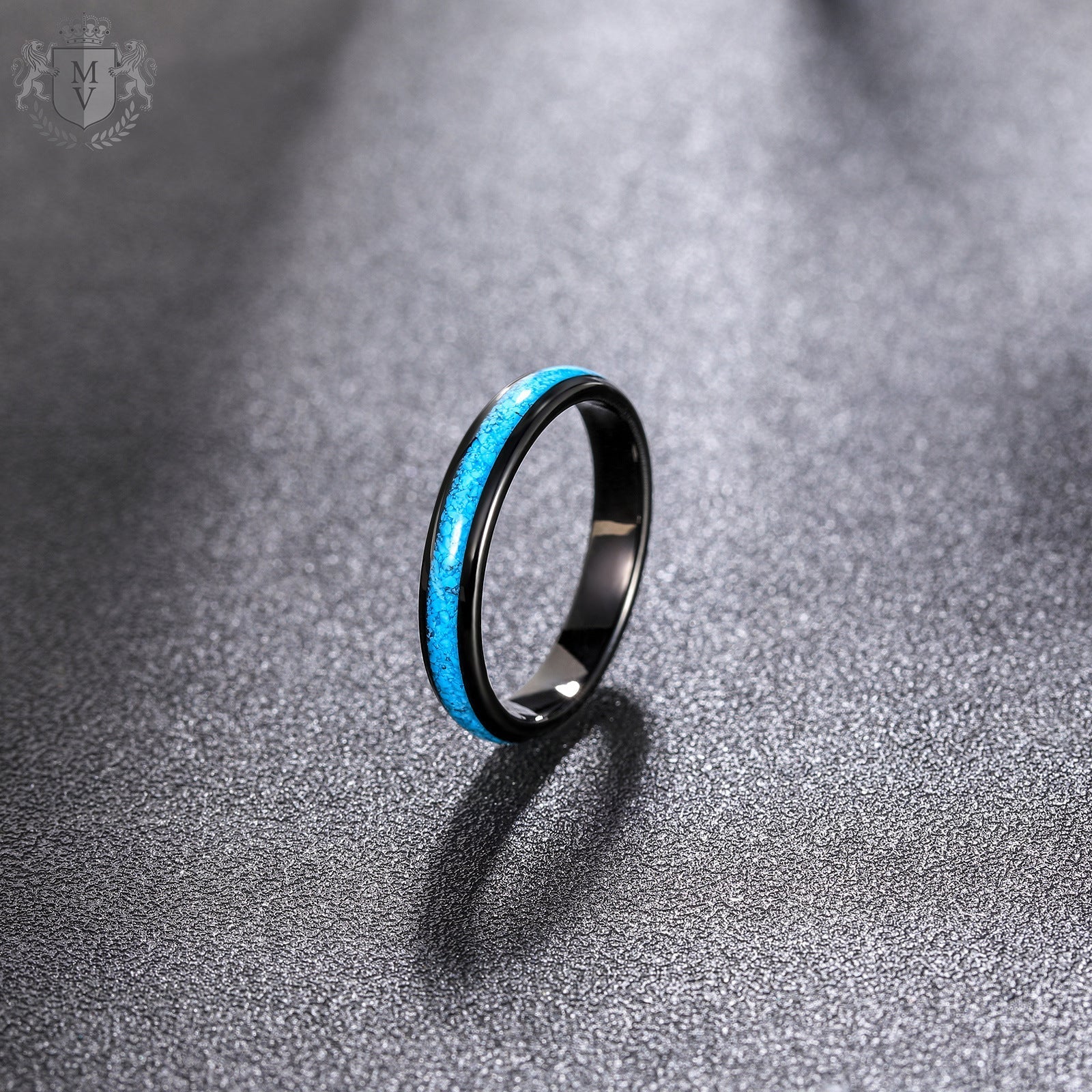 Lyra is inspired by the brilliance of the stars and the calm of clear skies. Set in a polished black tungsten band, the ring features a vibrant crushed turquoise inlay — glowing with energy and contrast. Its slender 4mm width makes it delicate yet impactful, perfect for those who want their jewelry to shine with personality and strength. Modern, elegant, and quietly cosmic, Lyra is made for moments that last.