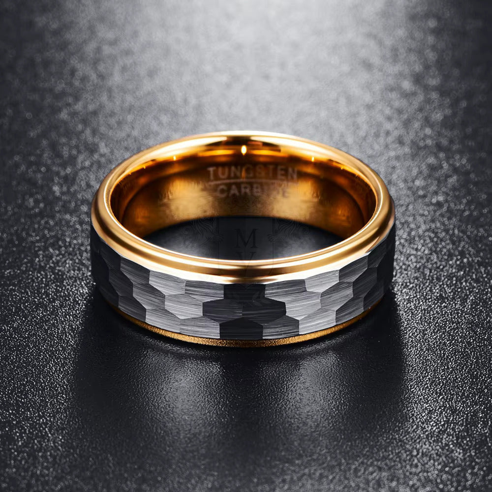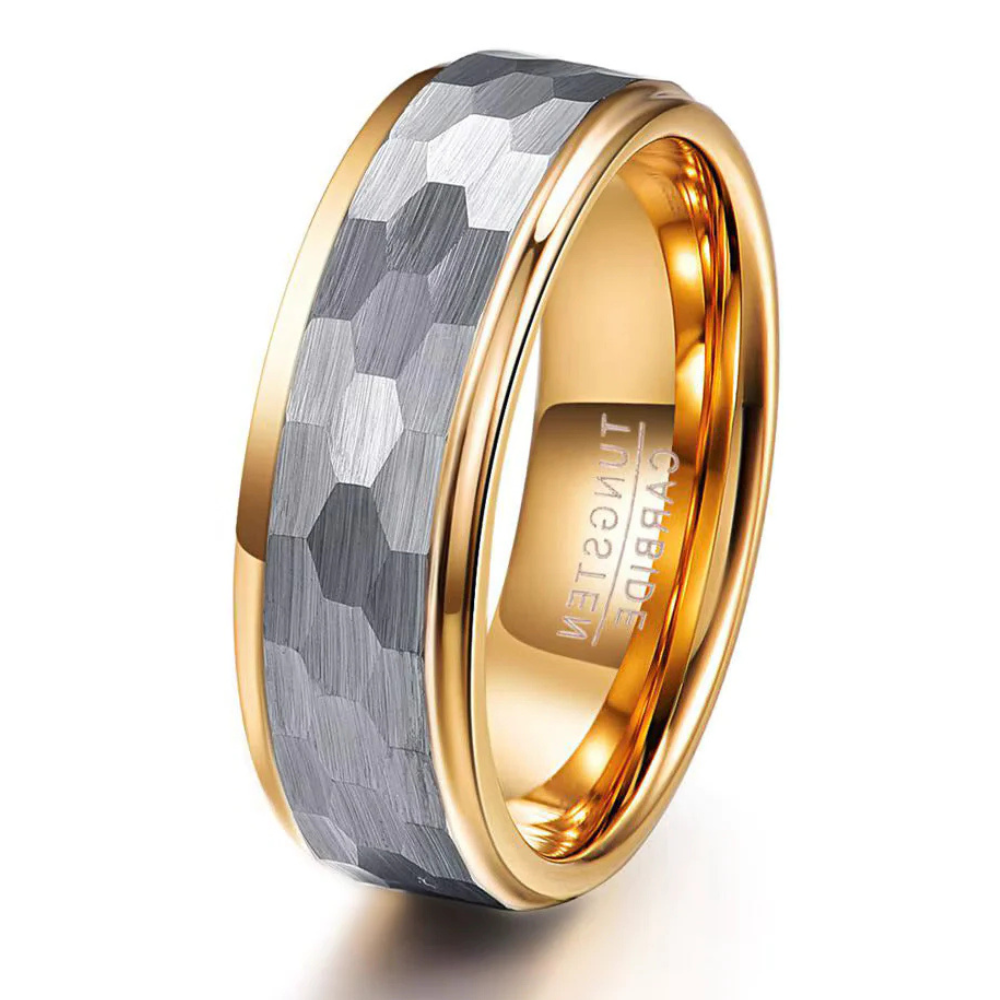 Exuding quiet authority and refined elegance, Sovereign is crafted for the modern man who commands respect without a word. Its premium tungsten carbide foundation offers unmatched durability, while the brushed silver bevel plate provides a sleek contrast against the rich gold outer ring. Designed for both style and comfort, Sovereign is more than a ring—it’s a testament to prestige, strength, and timeless sophistication.